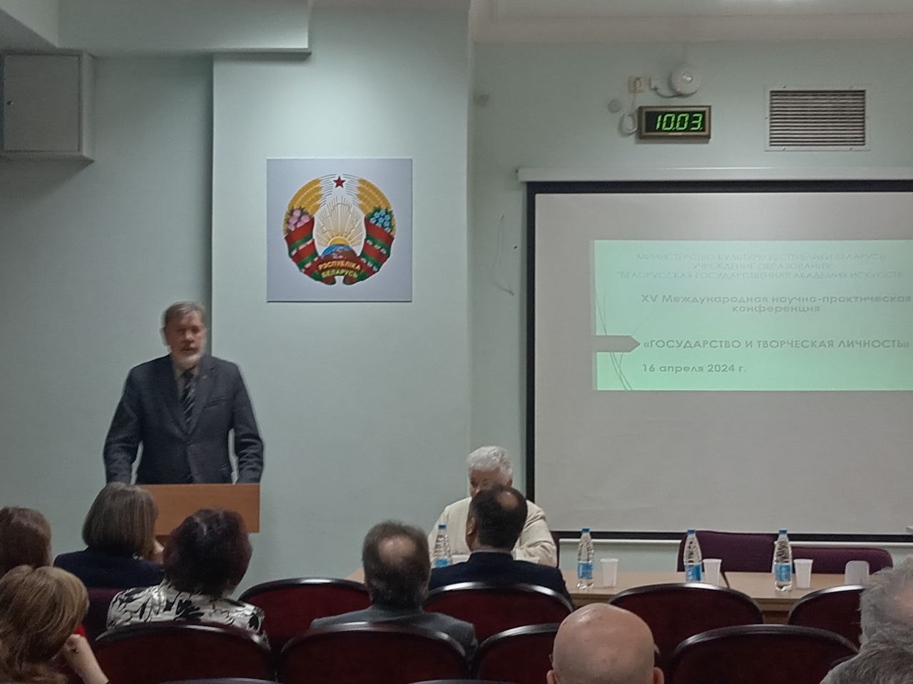 На пленарном заседании выступили ректор БГАИ М.Г.Борозна, генеральный директор Большого театра Беларуси Е.Н. Дулова, директор института истории НАН Беларуси В.Л. Лакиза, заведующая отделом экранных искусств Центра исследований белорусской культуры, языка и литературы НАН Беларуси А.А.Карпилова, профессор кафедры социологии БГУ Д.К.Безнюк и многие другие участники.