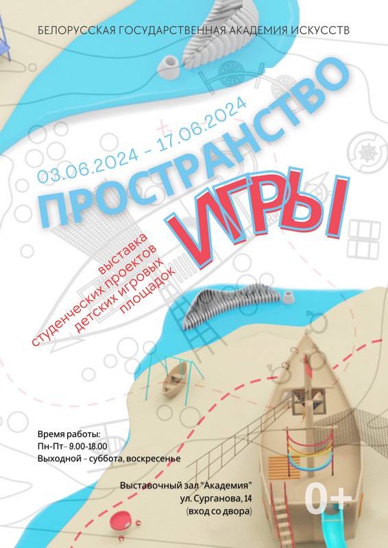 С 03.06. по 17.06.2024 в выставочном зале «Академия» Белорусской государственной академии искусств (г. Минск, ул. Сурганова, 14) будет проходить выставка проектов детских игровых площадок «Пространство игры».