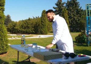 На фото группа студентов и магистрантов Академии искусств во главе с главным научным сотрудником научно-исследовательского отдела БГАИ Машарской Ольгой Сергеевной во время посещения Фестиваля науки в Центральном ботаническом саду.
