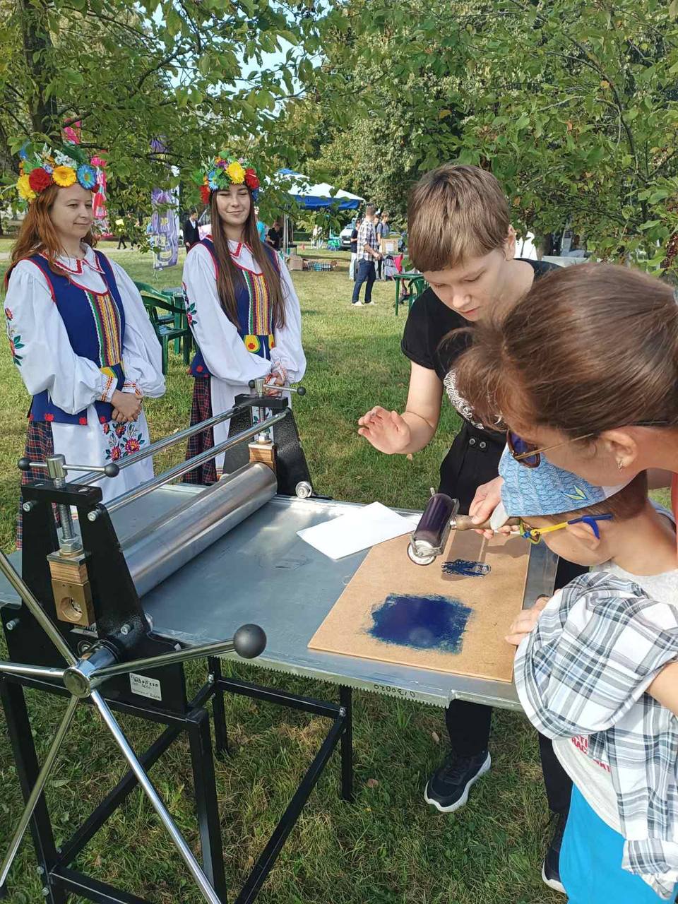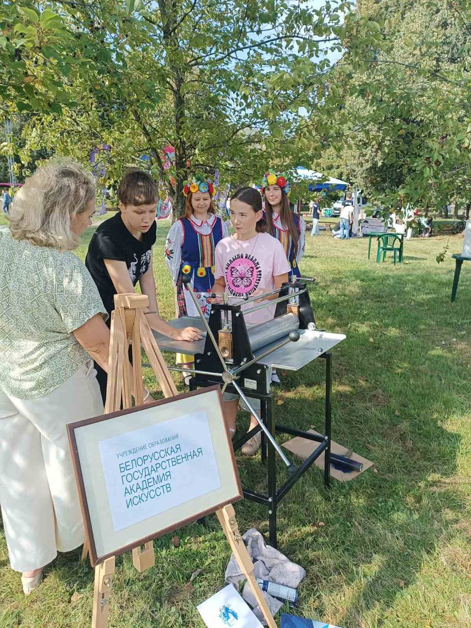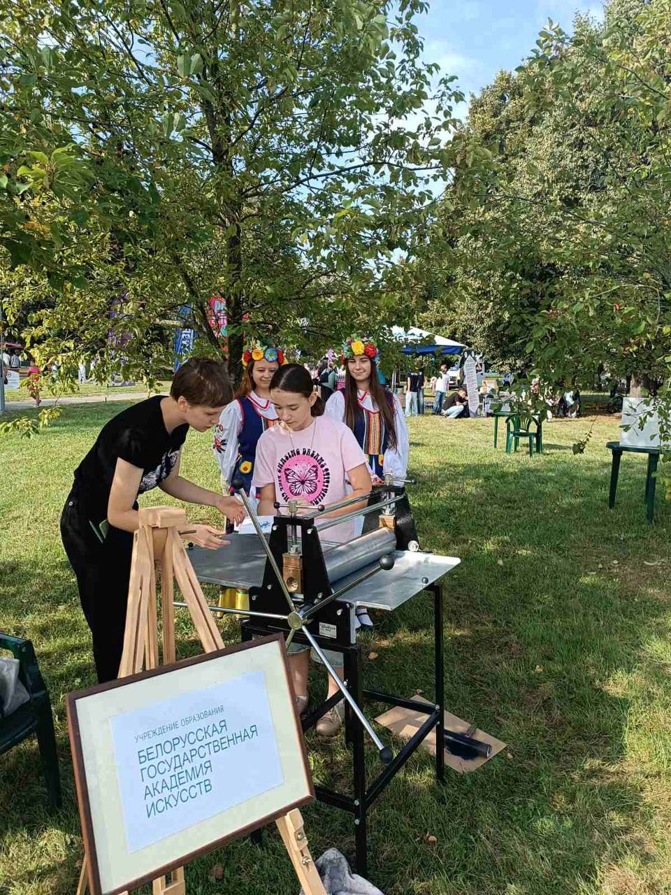 Студенты художественного факультета дарили в этот день мастер-класс по линогравюре, а студенты театрального факультета интерактив в национальных белорусских костюмах, вели мероприятие на главной сцене сквера, а также выступали с творческими номерами.