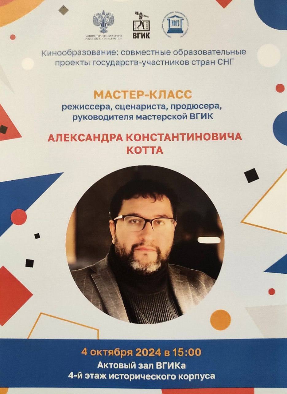4 октября 2024 года студенты факультета экранных искусств в рамках запланированных творческих встреч Международного студенческого фестиваля стран СНГ “Восхождение-2024” посетили мастер-класс кинорежиссёра, сценариста, продюсера Александра Константиновича Котта.