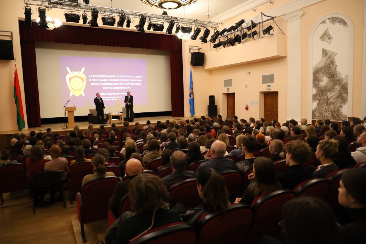 Прямо сейчас Генеральный прокурор выступает в Белорусской государственной академии искусств на тему расследования уголовного дела о геноциде белорусского народа: исторические параллели.