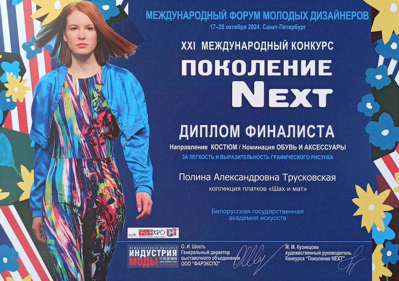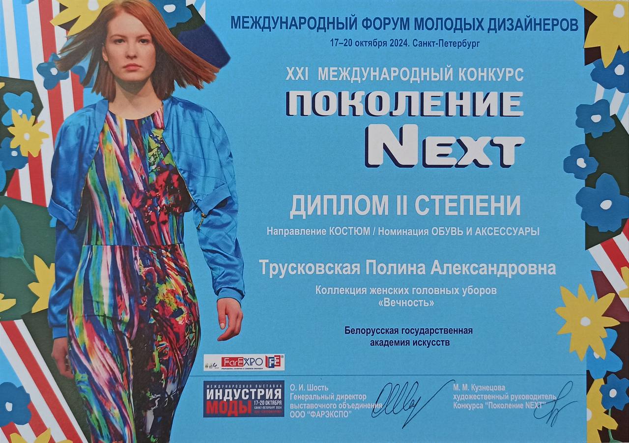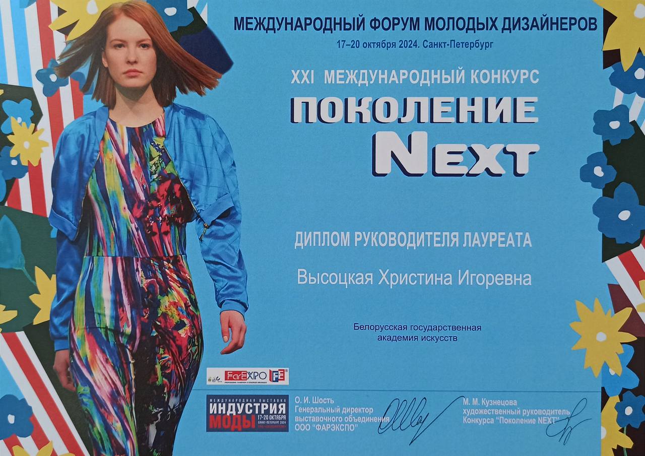 Поздравляем студентов кафедры Декоративно-прикладного искусства и костюма с успешными результатами на международном конкурсе “Поколение Next”, который проходил в Санкт-Петербурге с 17 по 20 октября 2024 г., Россия.
