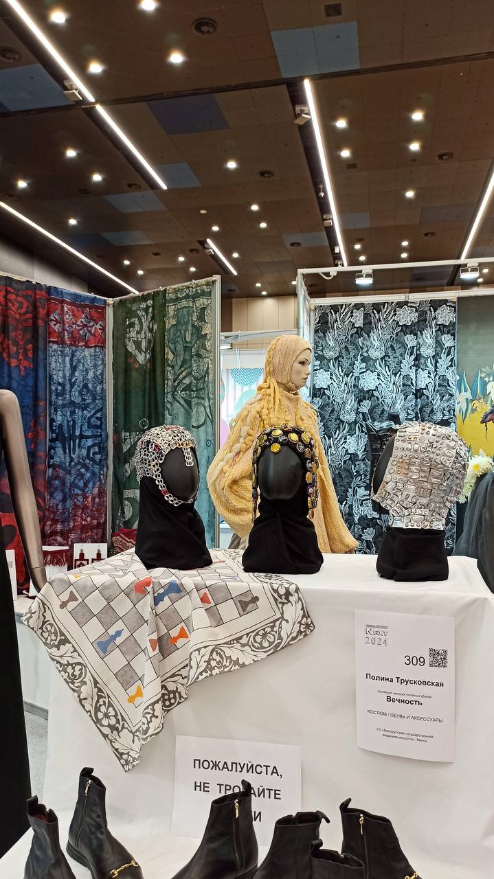 Полина Трусковская, студентка 3 курса направления специальности “ДПИ (изделия из текстиля)” стала лауреатом (2 место) в номинации “Обувь и аксессуары” за коллекцию головных уборов. И получила диплом финалиста “за лёгкость и выразительность графического рисунка” за коллекцию платков. Руководитель: доцент кафедры Высоцкая Х.И.