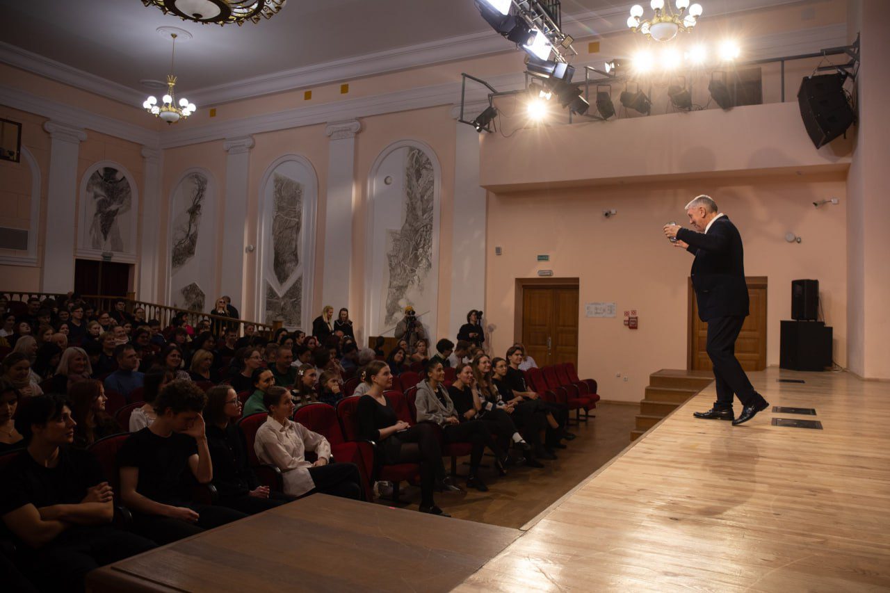 2 ноября на площадке Большого зала учебного театра-студии им. Е. Мировича Белорусской государственной академии искусств студентами мастерской Заслуженного деятеля искусств, Заслуженного артиста РФ, Лауреата Премии Правительства РФ, профессора ВГИК А. Л. Фёдорова был показан спектакль «Женитьба Белугина».