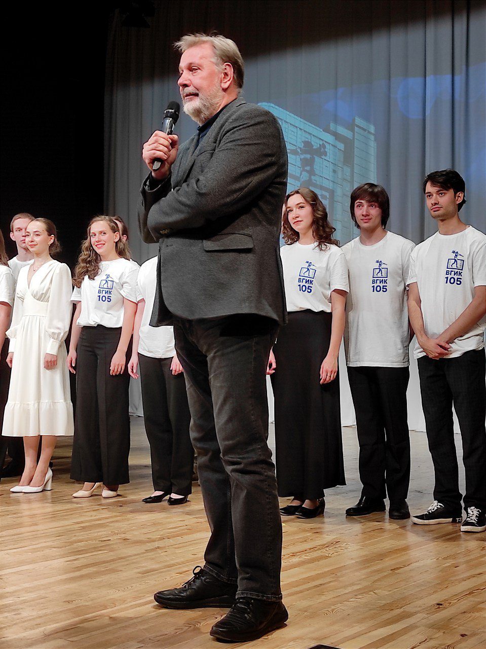 Ректор Михаил Григорьевич Борозна от лица всего коллектива Академии искусств поблагодарил руководство и студентов ВГИКа, участников торжественного мероприятия.