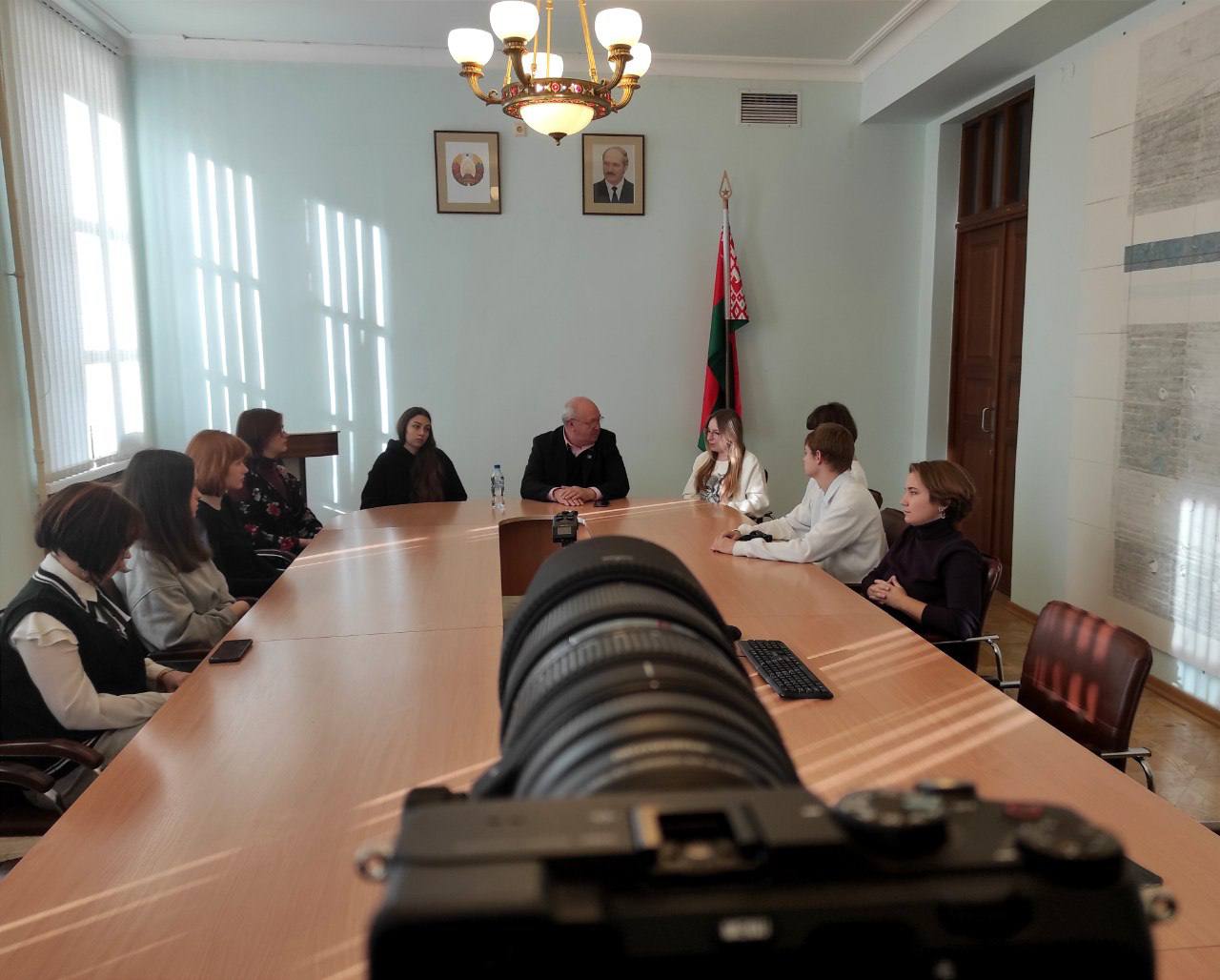 Модератором выступил заместитель декана факультета экранных искусств по идеологической и воспитательной работе, Заслуженный деятель искусств Республики Беларусь, председатель Конфедерации киносоюзов стран СНГ Виктор Игоревич Васильев. Молодёжную аудиторию представляли старосты курсов факультета экранных искусств. Конструктивно обсуждались вопросы по профессиональному обучению, перспективы развития белорусского кинематографа, обмен опытом со старшим поколением кинематографистов.