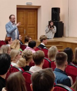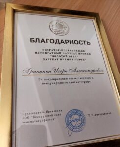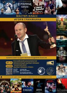 7 ноября 2024 года в рамках мероприятий XXX ММКФ “Лістапад” в театре-студии имени Е.Мировича учреждения образования “Белорусская государственная академия искусств” совместно с РОО “Белорусский союз кинематографистов” и Россотрудничеством состоялся познавательный и насыщенный мастер-класс с актёром, кинорежиссёром, кинооператором-постановщиком, сценаристом, продюсером, пятикратным лауреатом премии “Золотой орёл”, лауреатом премии “ТЭФИ” Игорем Александровичем Гринякиным.