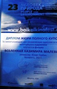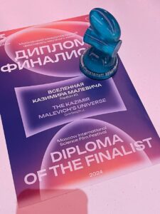 Проект Горбач Юлии «Вселенная Казимира Малевича» был награжден призом жюри полнокупольного кино на 23 Байкальском международном кинофестивале «Человек и природа» им.В.Г.Распутина (17-27 сентября 2024), а также вошел в число финалистов на Московском международном фестивале научного кино (8-10 ноября 2024).