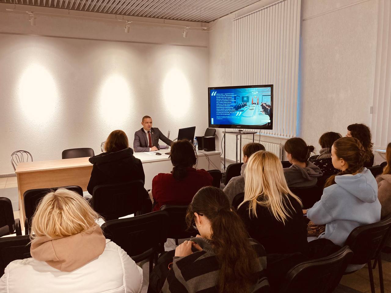 21 ноября, в Белорусской государственной академии искусств в рамках Единого дня информирования прошла встреча студенческой молодежи с секретарем ПО ОО «БРСМ» БГАИ Оскерко Максимом.