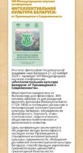 Заместитель декана по идеологической и воспитательной работе театрального факультета БГАИ , Юшкевич Е .В . приняла участие в восьмой международной научной конференции “Интеллектуальная культура Беларуси: от Просвещения к Современности”.