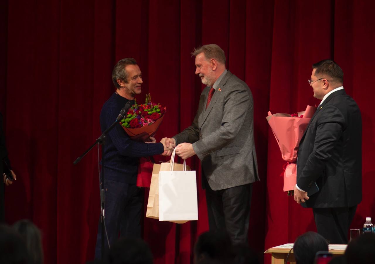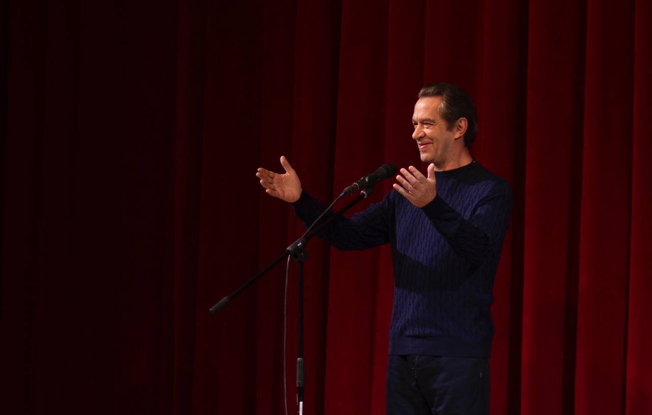 В теплой беседе со зрителями Владимир Машков рассказал о своем творческом пути, взглядах на актерское образование и поделился секретами, как ему удается совмещать так много должностей и видов деятельности, а также поделился со студентами тонкостями актерского мастерства.