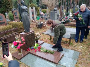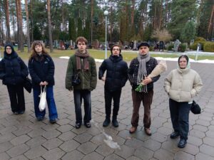 17 декабря студенты 2 и 3 курса факультета экранных искусств Академии искусств под руководством куратора групп старшего преподавателя кафедры кино и телевидения факультета экранных искусств БГАИ С.А.Карбовского возложили цветы на Восточном кладбище к могилам корифеев белорусского кино в день столетия белорусского кино.