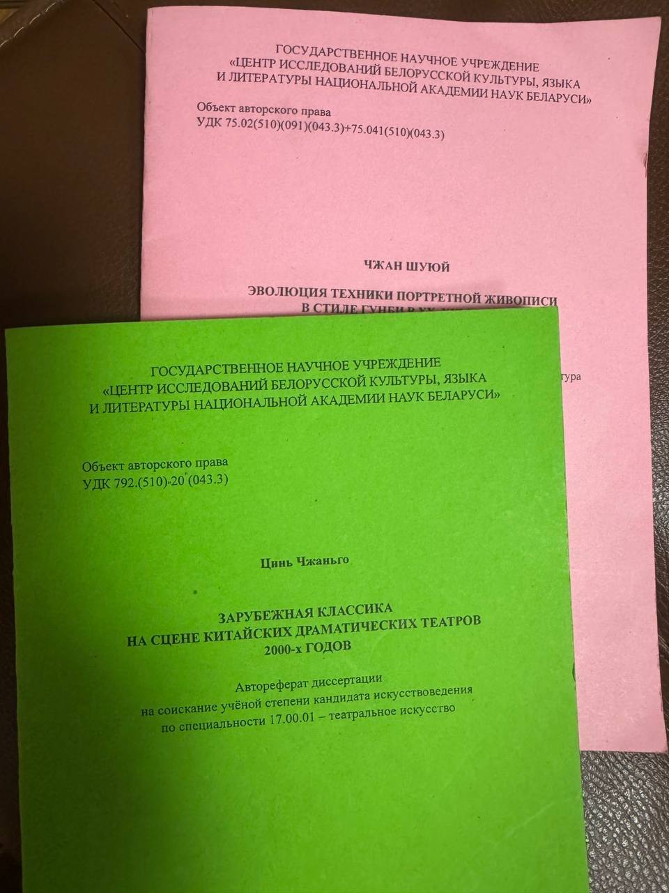 20 декабря 2024 года состоялась защита кандидатских диссертаций двух выпускников аспирантуры Белорусской государственной академии искусств: Цинь Чжаньго по специальности «Театральное искусство» и Чжан Шуюя по специальности «Изобразительное, декоративно-прикладное искусство и архитектура».
