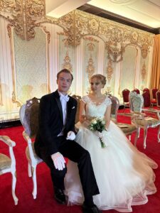 Студенты театрального факультета Белорусской государственной академии искусств Кирилл Лялюго и Елизавета Гаврилова на Новогоднем балу с участием Президента Республики Беларусь А.Г.Лукашенко во Дворце Независимости 24 декабря 2024 года.