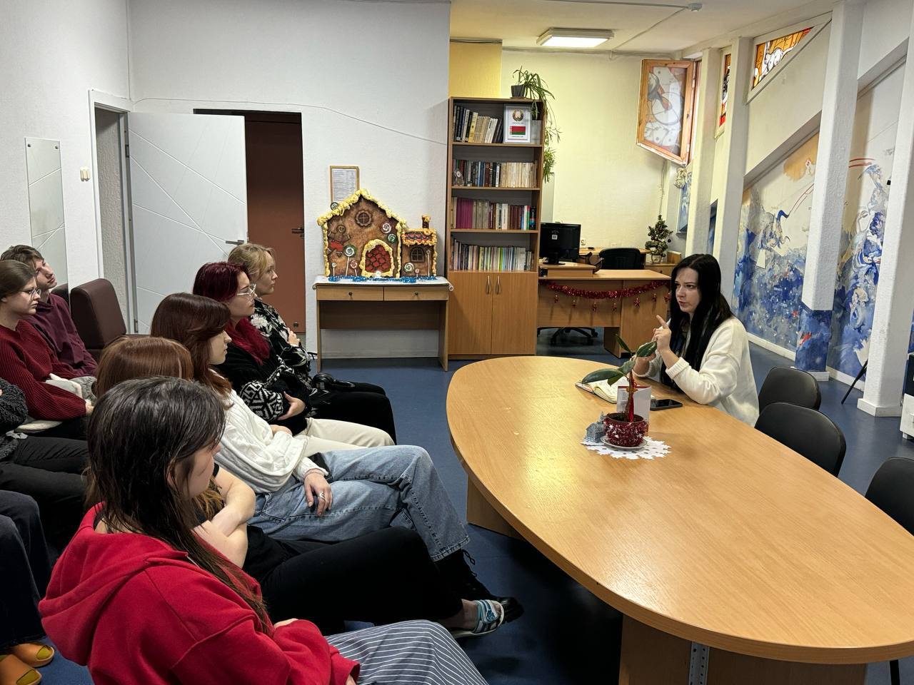 27 декабря заместитель декана по идеологической и воспитательной работе факультета дизайна и декоративно-прикладного искусства Капустина Кира Андреевна провела информационный час в общежитии БГАИ на тему «О подготовке к сессии. Планирование своего времени. Основные трудности».