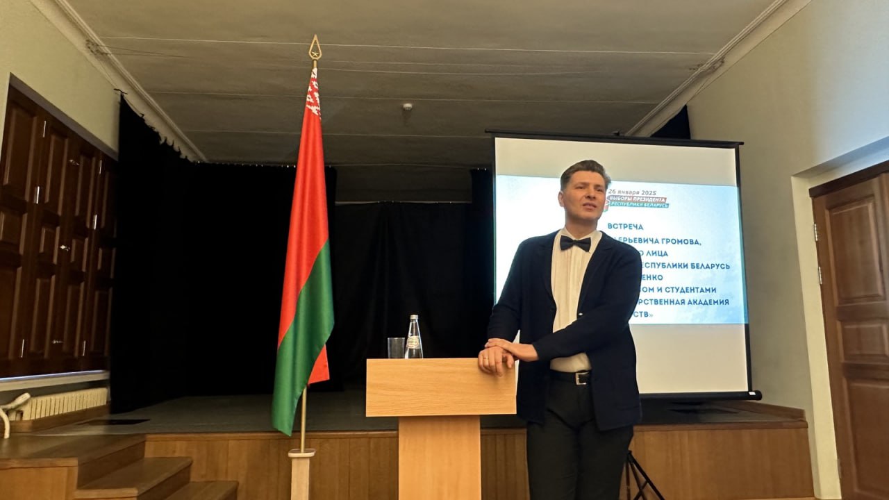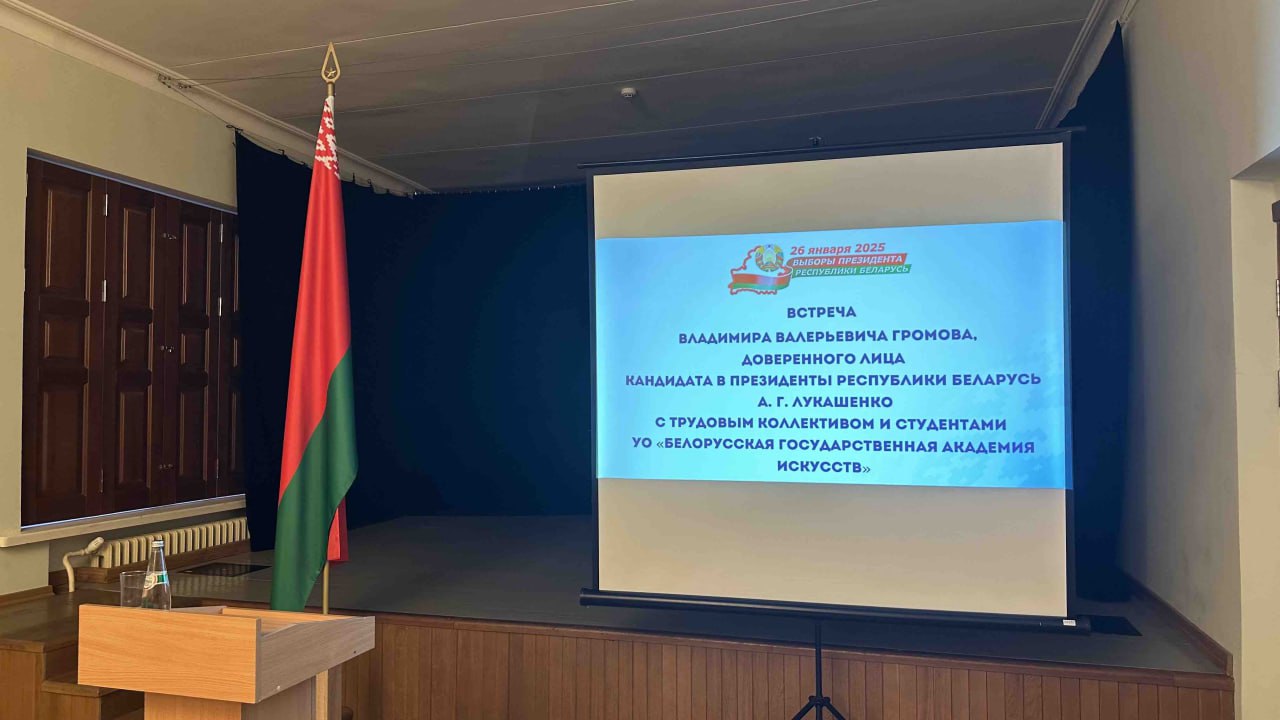 21 января в Белорусской государственной академии искусств состоялась встреча Владимира Валерьевича Громова, доверенного лица кандидата в Президенты Республики Беларусь А.Г. Лукашенко, с трудовым коллективом БГАИ.
