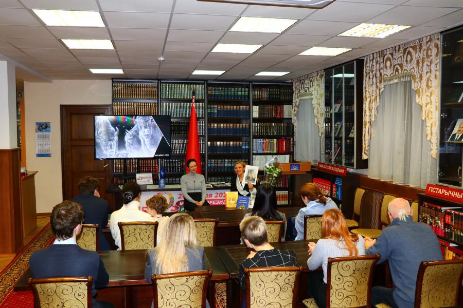 В Президентской библиотеке Республики Беларусь состоялась встреча с Елизаветой Пастушенко , доцентом кафедры рисунка, заведующей подготовительным отделением Белорусской государственной академии искусств, белорусским художником-графиком, чье творчество охватывает широкий спектр тем и техник.