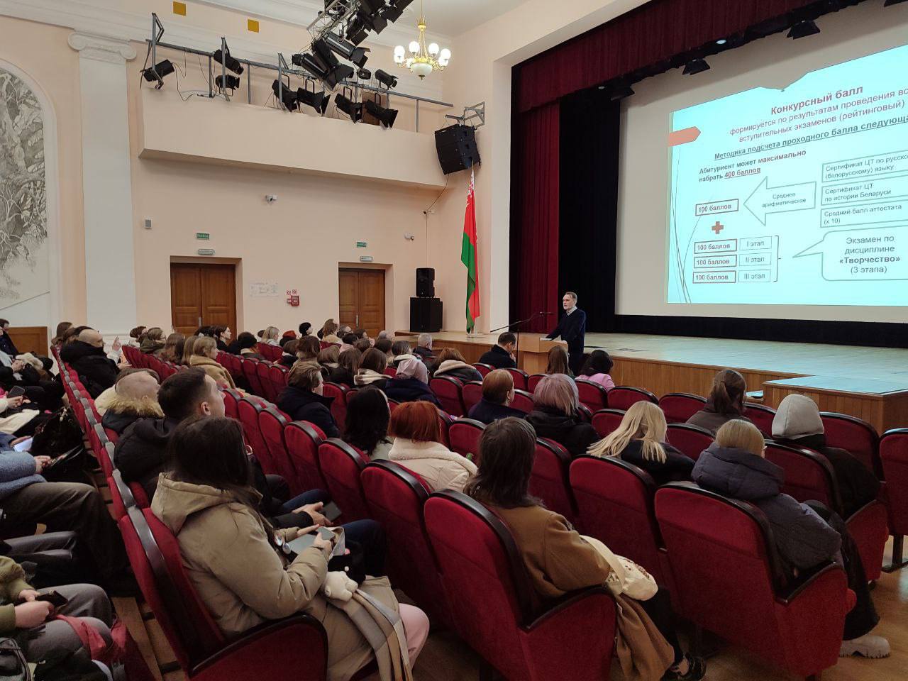 Абитуриенты и их родители смогли узнать о правилах проведения вступительных экзаменов, актуальных специальностях, особенностях обучения творческим профессиям, жизни академии.