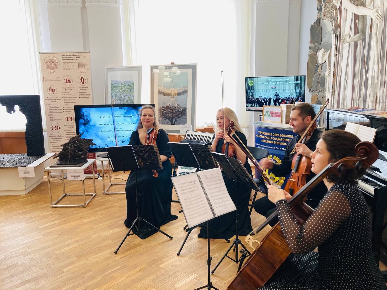 Также свои экспозиции представили в фойе учебного театра-студии имени Е.Мировича представили Белорусский государственный университет культуры и искусств и Белорусская государственная академия музыки.