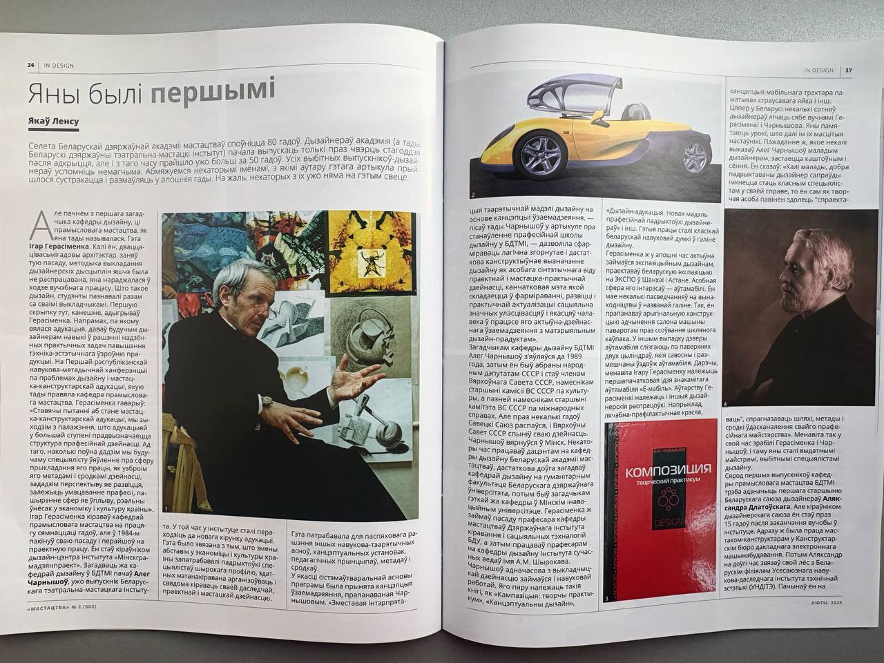 В 2/2025 номере журнала «Мастацтва» в рамках цикла статей, посвященных 80-летию БГАИ, опубликована статья заведующего кафедрой теории и практики коммуникационного дизайна, доктора искусствоведения, доцента Ленсу Я.Ю. об истории факультета дизайна и декоративно-прикладного искусства.