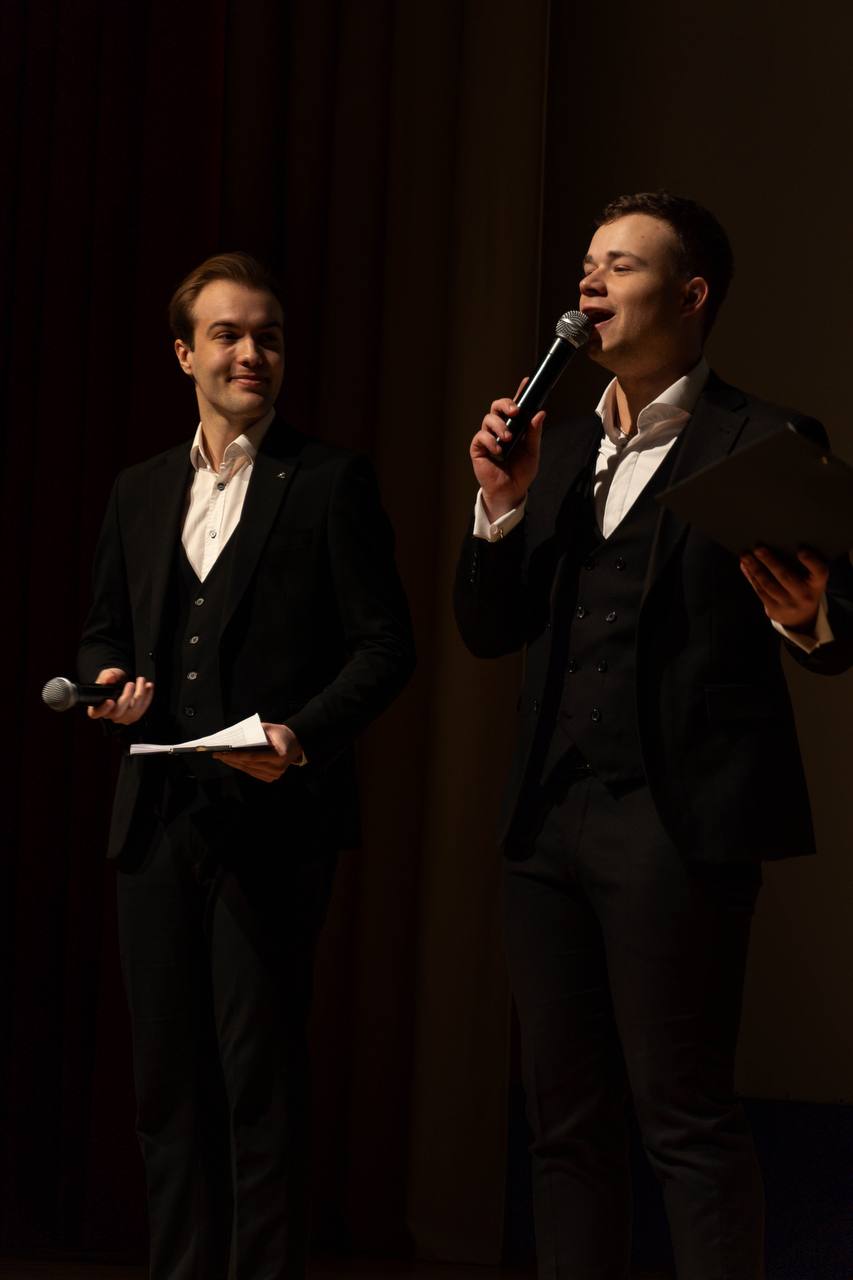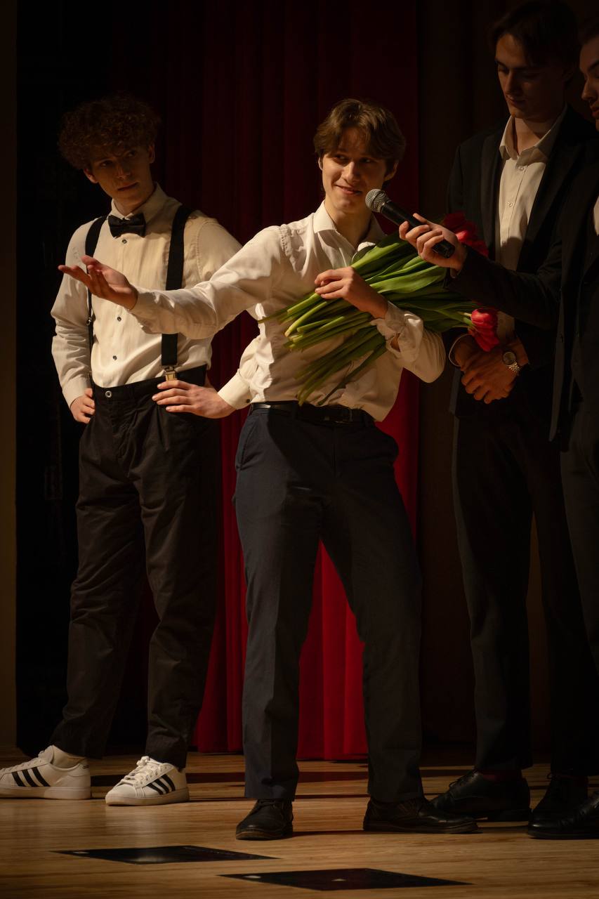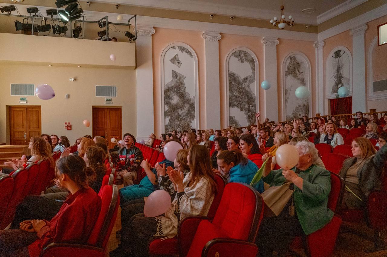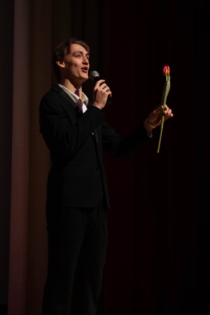 Праздничную атмосферу создали студенты театрального факультета, подарив присутствующим концертные номера, тепло сердец, задорное настроение и цветы.