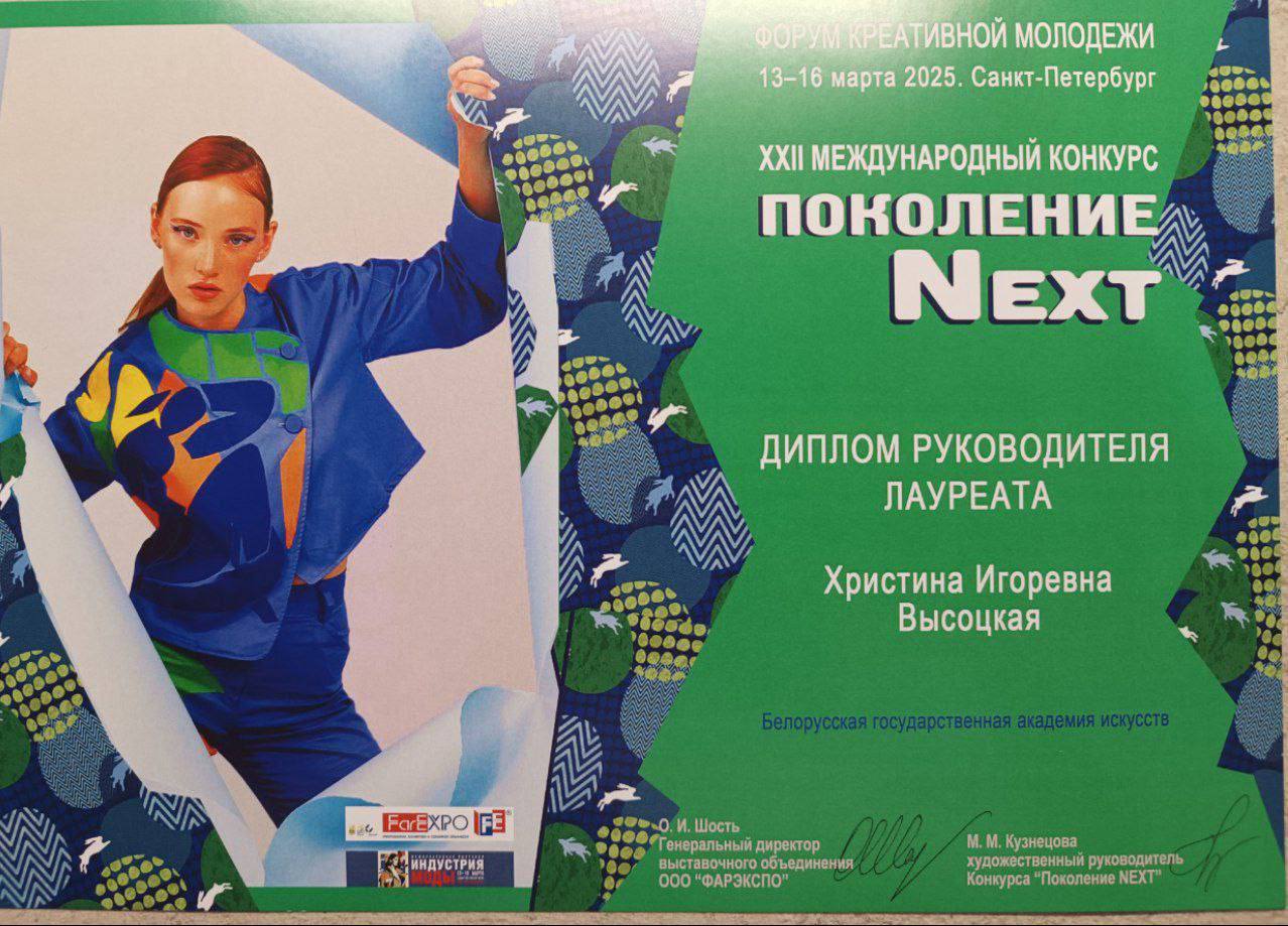 С 13 по 16 марта 2025 в г. Санкт-Петербург, Россия, в рамках Форума креативной молодёжи прошел 22 Международный конкурс молодых дизайнеров «Поколение NEXT» в рамках Международной выставки «Индустрия моды»