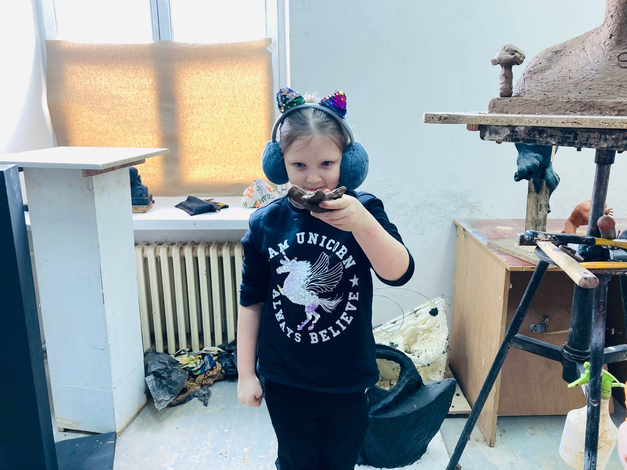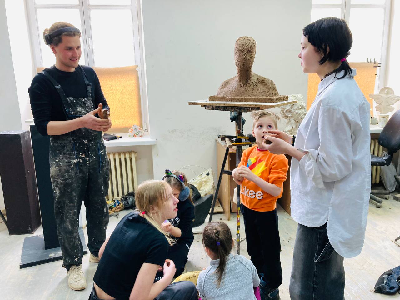 Сотрудники ОИВР БГАИ провели для ребят экскурсию по Академии искусств, во время которой они посетили мастерские кафедры скульптуры. Студенты показали ребятам приемы лепки из глины и рассказали о тонкостях работы скульптора.