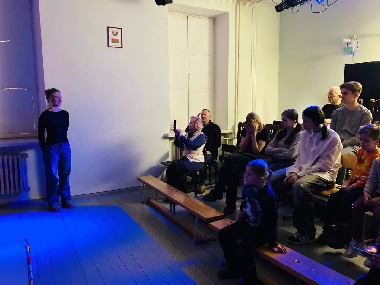 Далее ребят ожидал дипломный спектакль по мотивам пьесы О.Антонова «Арена четырех». Режиссер постановщик — студентка 5 курса театрального факультета БГАИ, специальности «Режиссура (драматический театр) Арина Орлова.