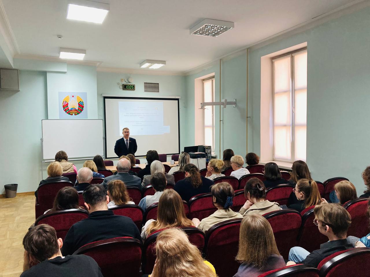 Спикер мероприятия Клишевич Сергей Михайлович- член Постоянной комиссии Палаты представителей Национального собрания Республики Беларусь по образованию, культуре и науке встретился с коллективом Белорусской государственной академии искусств