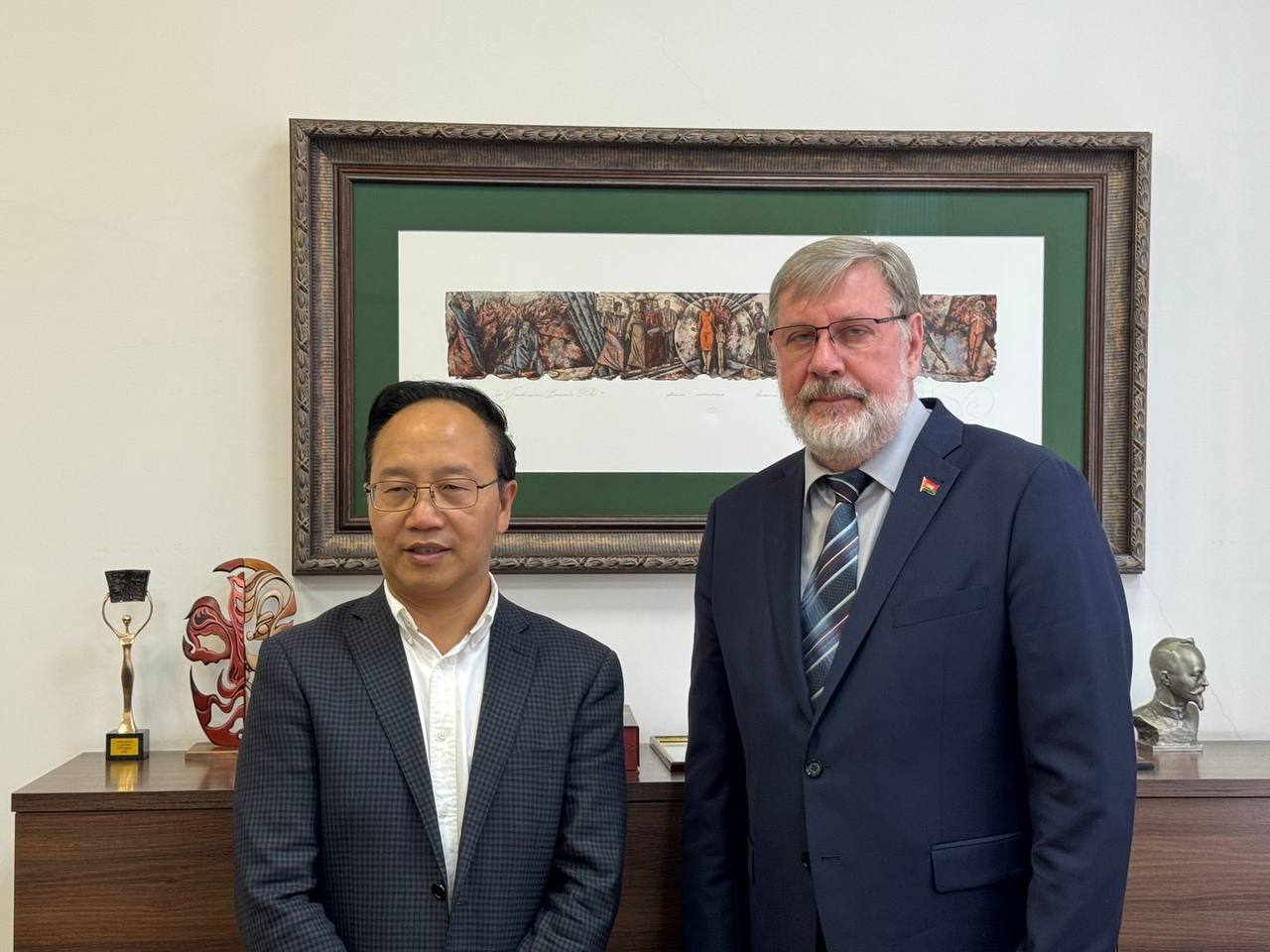 В ходе визита ректор БГАИ М.Г. Борозна и секретарь партийного комитета Китайской академии искусств Цзинь Ибинь подписали соглашение о сотрудничестве, обсудили вопросы перспективного взаимодействия.