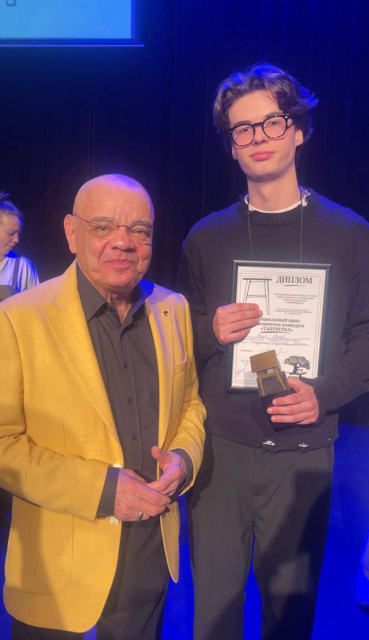Обладатель специального приза; участие на Гала-вечере поэтического конкурса чтецов «Табуретка» с Константином Райкиным.