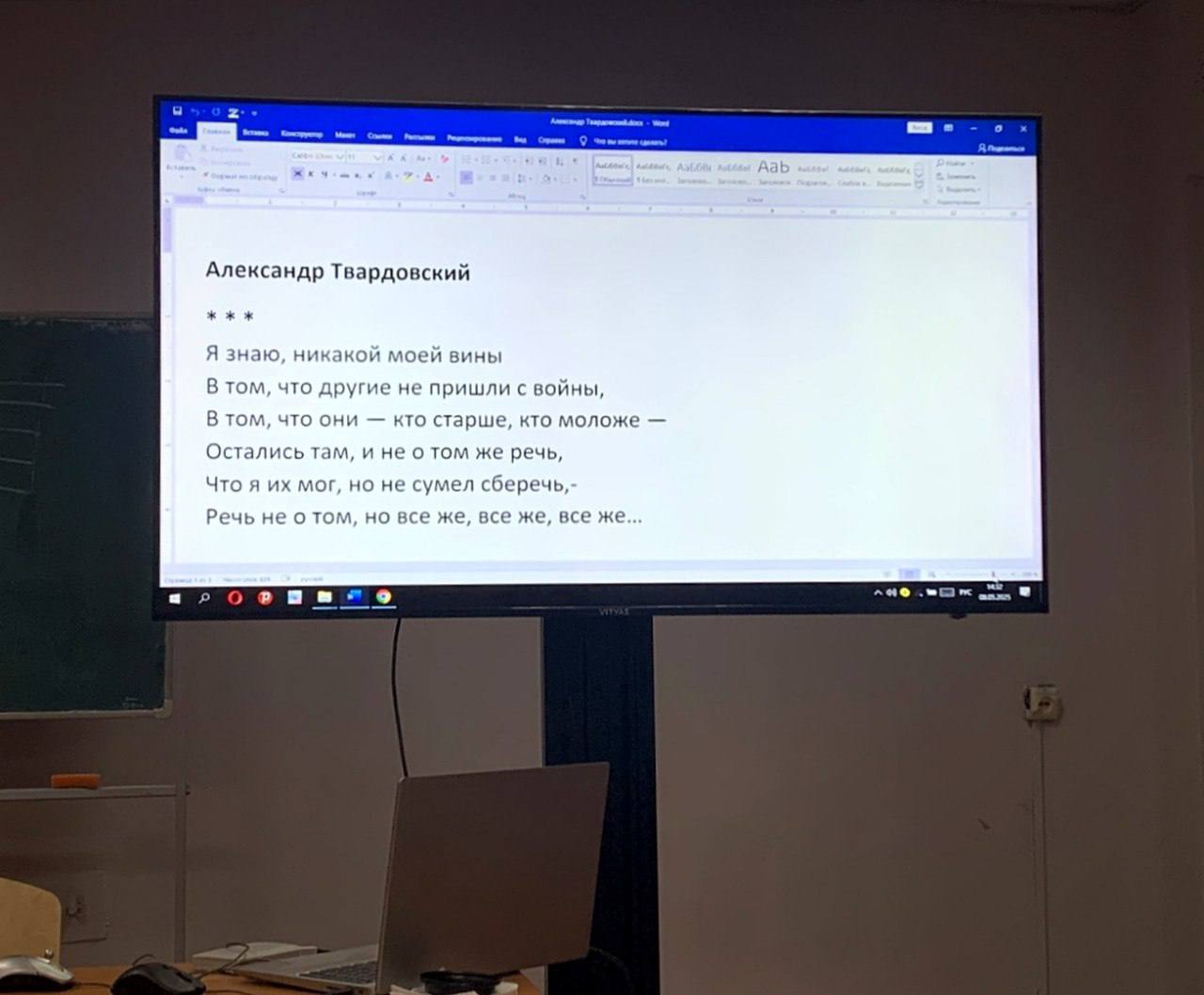 8 мая на факультете экранных искусств в преддверии 80-летия Великой Победы студенты второго курса направления специальности «Искусствоведение (кинотеледраматургия)» с профессором кафедры кино и телевидения И.Н.Демьяновой ознакомились со стихами военной тематики выдающихся поэтов Булата Окуджавы, Александра Твардовского и Юлии Друниной.