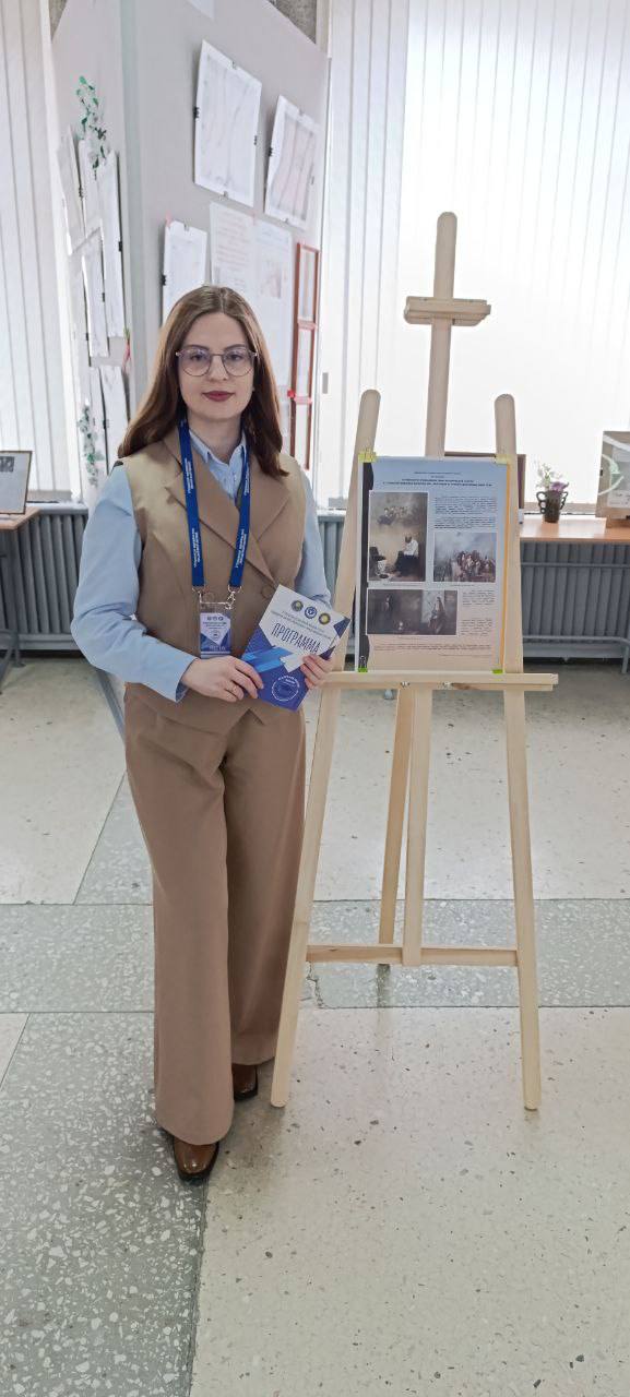 В рамках постерных докладов на конференции выступили председатель Совета молодых ученых БГАИ Е.Н.Богданова с докладом «Особенности отображения темы исторической памяти в станковой живописи Беларуси 2001-2010 годов на примере дипломных работ БГАИ» и заместитель председателя Ю.С.Пешина с докладом «Роль Белорусской государственной академии искусств в формировании и развитии монументального искусства Беларуси на современном этапе».