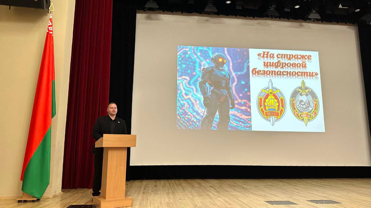 10 июня 2025 года в рамках информационного часа перед сотрудниками и студентами БГАИ выступил представитель отдела по противодействию киберпреступности криминальной милиции Первомайского РУВД г.Минска Назар Букшта.