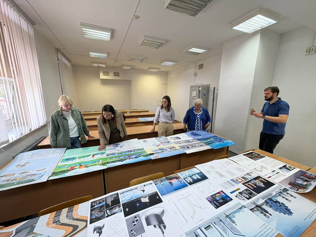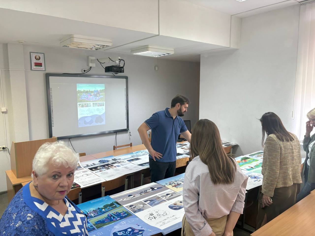 Обсуждены вопросы благоустройства Первомайского района г. Минска на основе дизайнерских разработок студентов факультета. Ряд проектов детских площадок представленных на макетах вызвал большой интерес у заместителя директора предприятия Ирины Купрейчик для реализации во дворах наших домов в следующем году.