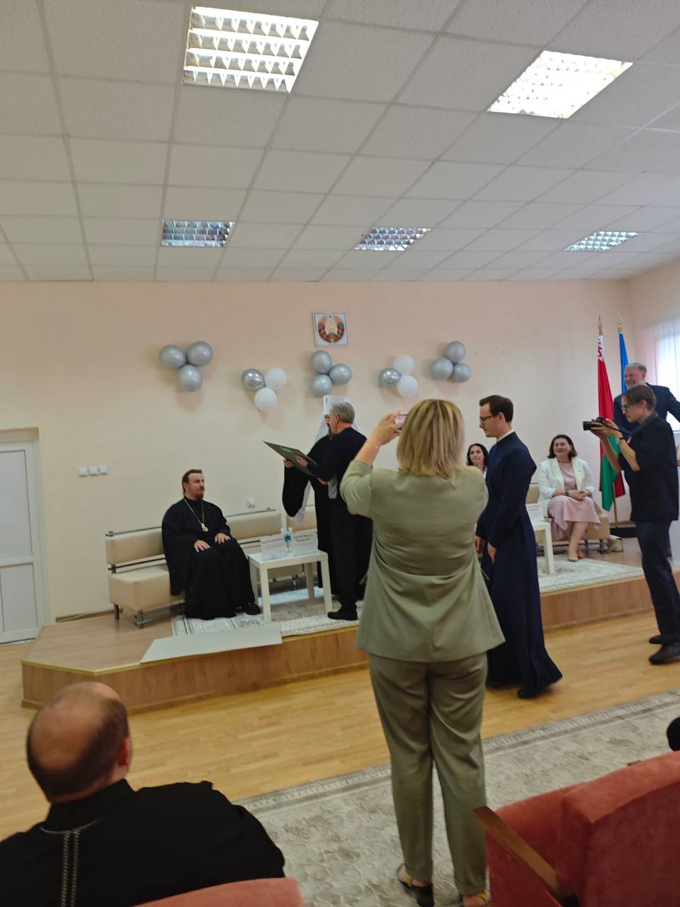 На торжественной церемонии открытия присутствовали: Митрополит Минский и Заславский Вениамин, ректор БГАИ М.Г. Борозна, заведующий кафедрой МДИ БГАИ В.Л. Зинкевич, автор работы Александра Чудакова, главный врач УЗ «5-я городская детская поликлиника » Ю.В. Готовка, представители администрации города Минска, представители депутатского корпуса, СМИ и общественности.