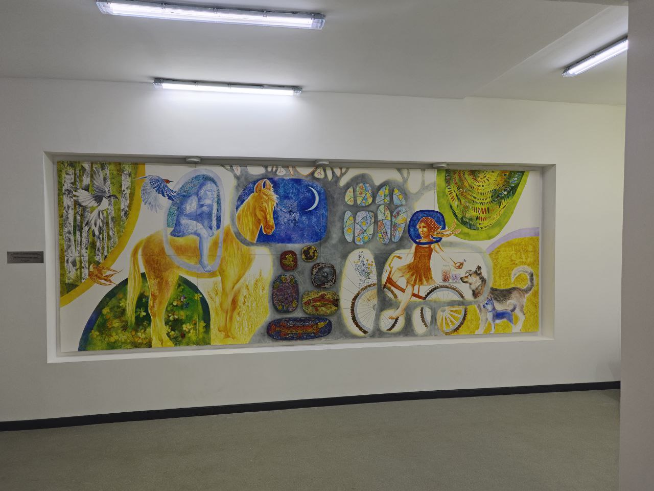 Панно «Сказочные мечты детства», выполненное в смешанной технике со вставками из мозаики, ярко представляет участие БГАИ в важных для города Минска и для Республики Беларусь социальных проектах