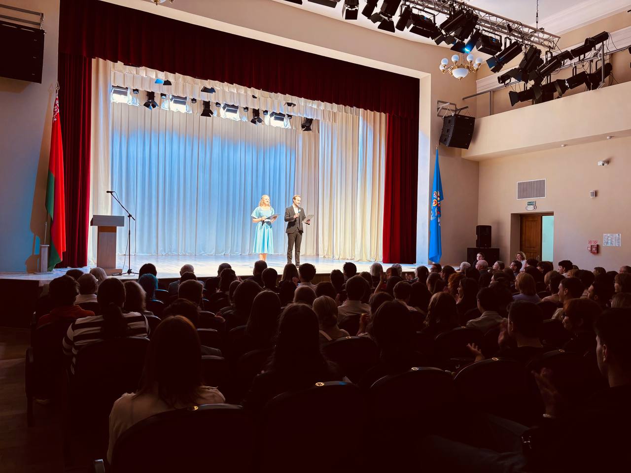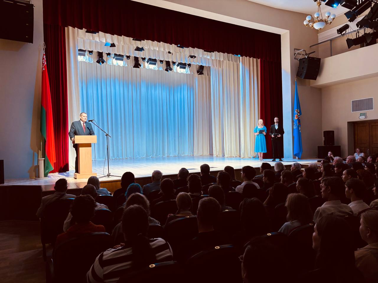 1 сентября 2025 года в большом зале учебного театра-студии имени Е. Мировича состоялось торжественное собрание, посвященное Дню знаний в Республике Беларусь для студентов и магистрантов нового факультета кино, театра и телевидения и художественного факультета.