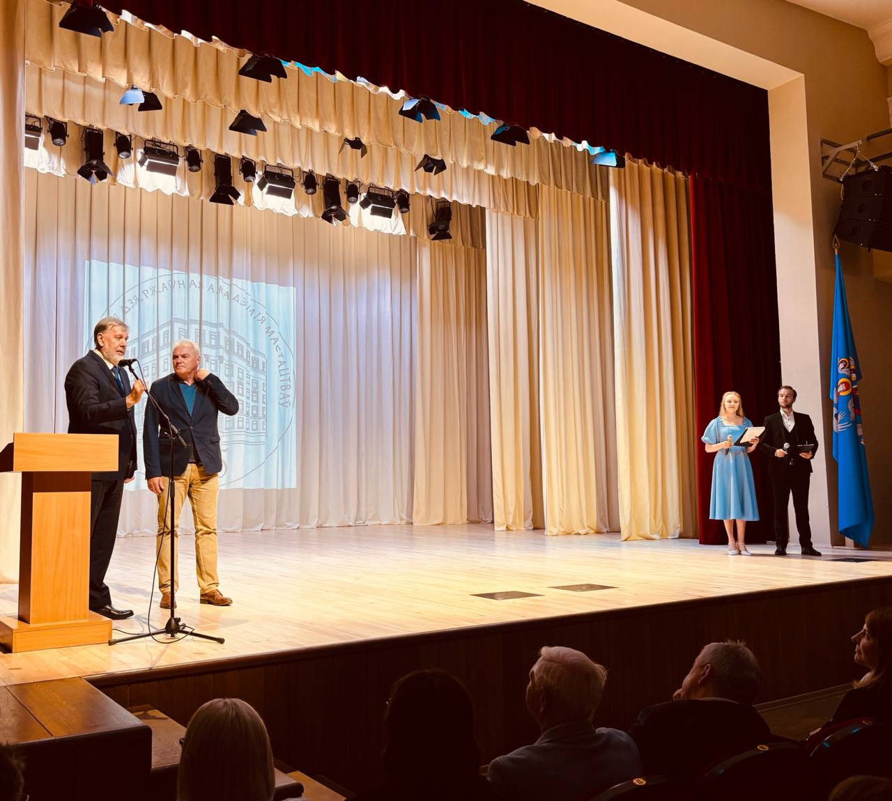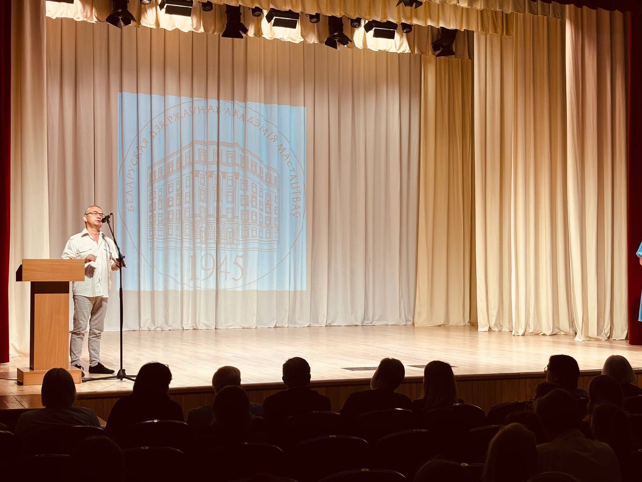 Ректор БГАИ также обозначил максимальное общественное признание людей искусства, отметил в своем выступлении важность участия БГАИ в значимых для Республики Беларусь мероприятиях в прошлом учебном году и рассказал о не менее амбициозных задачах на 2025/2026 учебный год. Представил нового декана факультета кино, театра и телевидения БГАИ Ивана Михайловича Павлова.