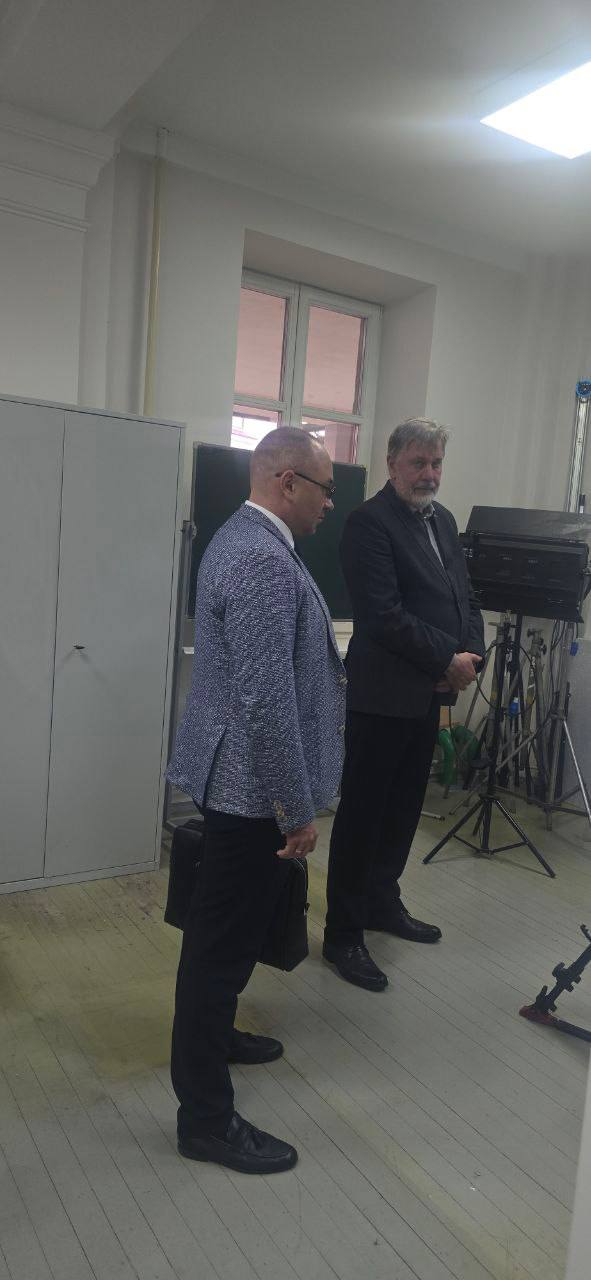 В ходе встречи Дмитрий Сергеевич ознакомился творческими пространствами БГАИ, а также учебными мастерскими. С особым интересом гость посетил большой и малый залы учебного театра-студии имени Е.Мировича. Ректор БГАИ представил работы студентов и выпускников, демонстрирующие высокий уровень подготовки специалистов, готовых к решению актуальных задач по развитию культуры и искусства Беларуси. Михаил Борозна отметил, что на сегодняшний день Академия искусств полностью сосредоточена на развитии современного кино, стремясь подготовить специалистов, способных создавать инновационные и актуальные произведения в сфере экранного искусства Беларуси.