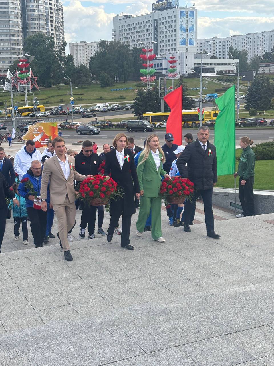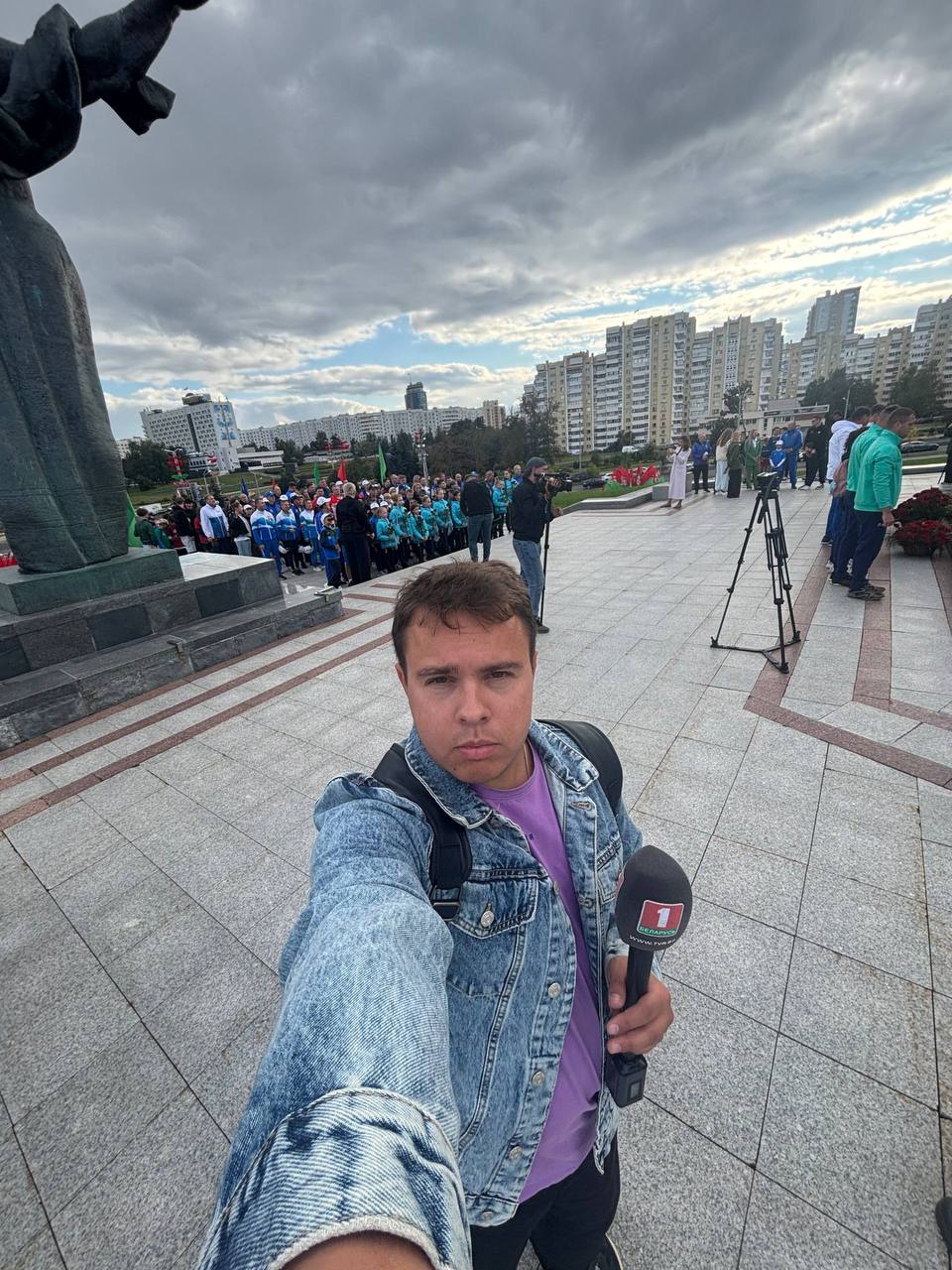 Студент специальности «Графика» художественного факультета Белорусской государственной академии искусств, обозреватель культурного проекта «Добрай раніцы, Беларусь!» телеканала Беларусь-1 Матвей Лейченок на велопробеге ко Дню народного единства в Минске с возложением цветов к стеле «Минск — город-герой»!