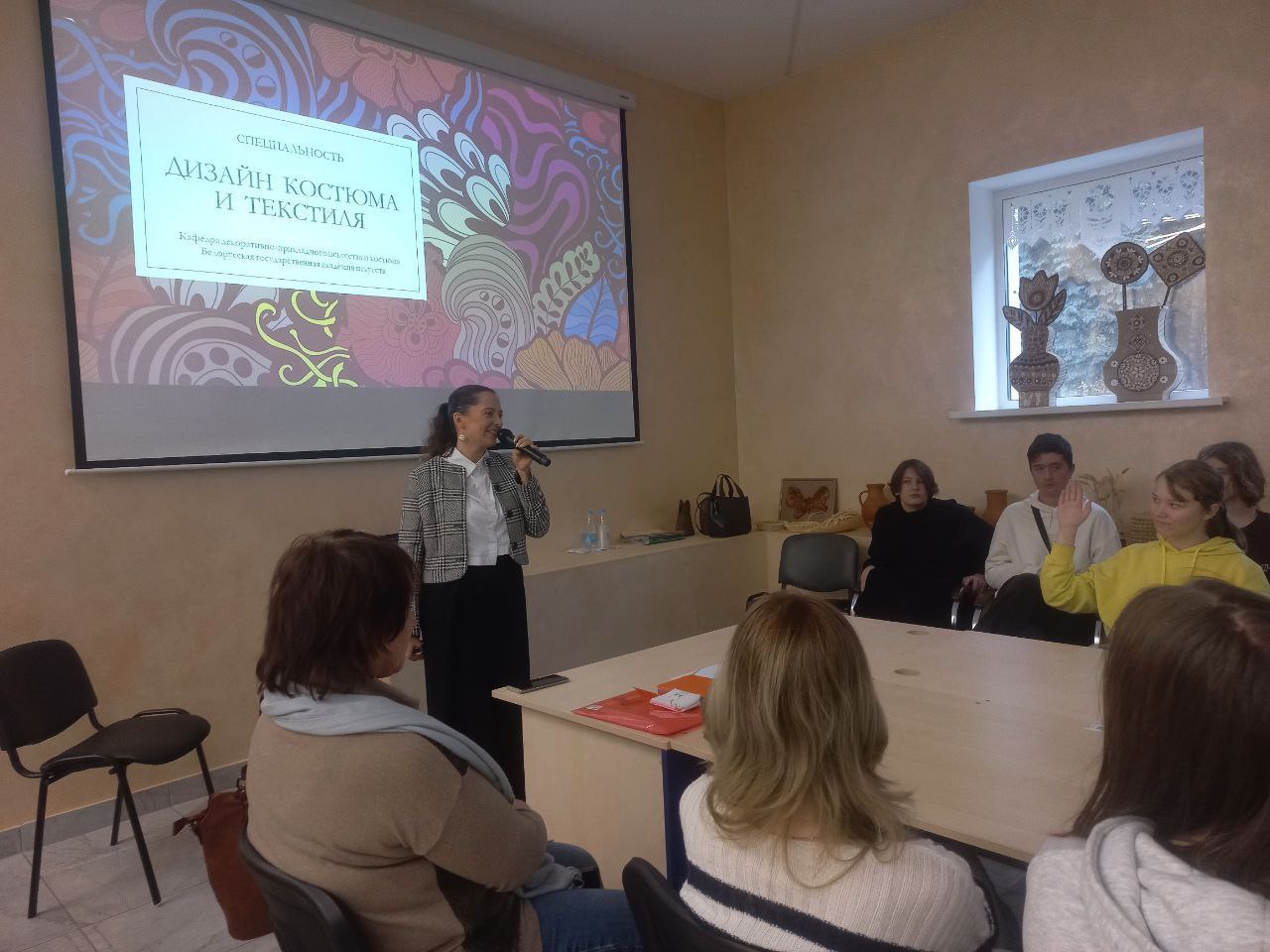 Кроме этого доцент кафедры декоративно-прикладного искусства и костюма Христина Высоцкая представила работу кафедры, рассказала об особенностях подготовки специалистов с высшим образованием в рамках специальностей факультета. Заместитель декана по идеологической и воспитательной работе Ольга Адамова обсудила с руководством колледжа технологии и дизайна легкой промышленности направления дальнейшего взаимодействия кафедры промышленного дизайна и интерьера по учебным и профориентационным вопросам.