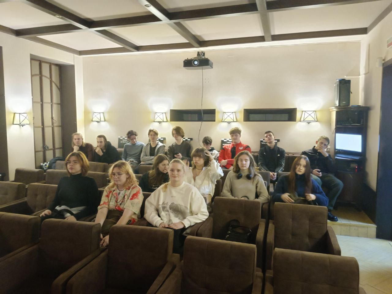 В сопровождении доцента кафедры кино и телевидения Сергея Карбовского будущие абитуриенты БГАИ окунулись в мир истории белорусского кинематографа и кинокультуры в целом.
