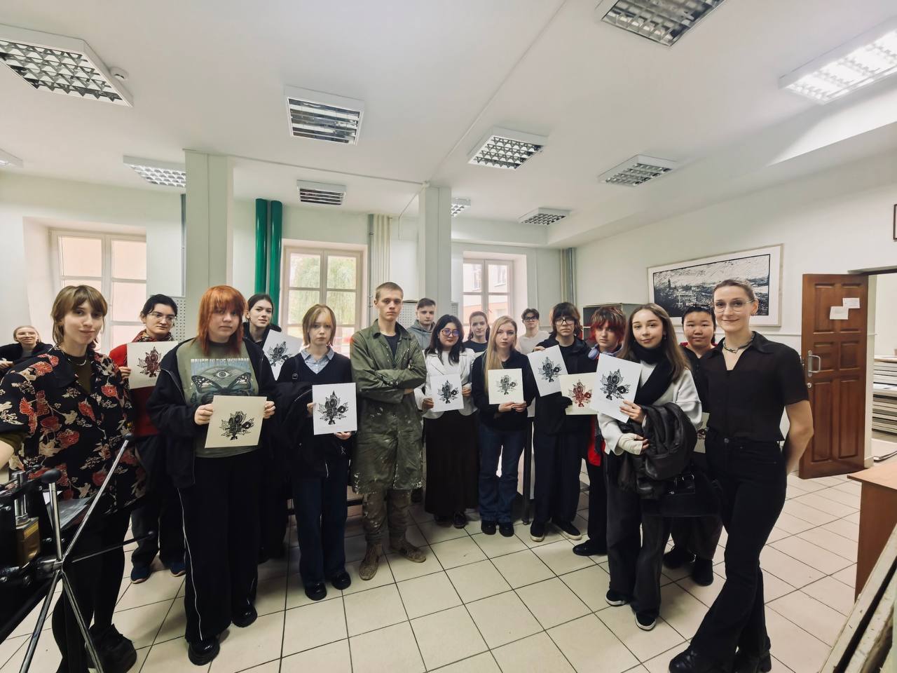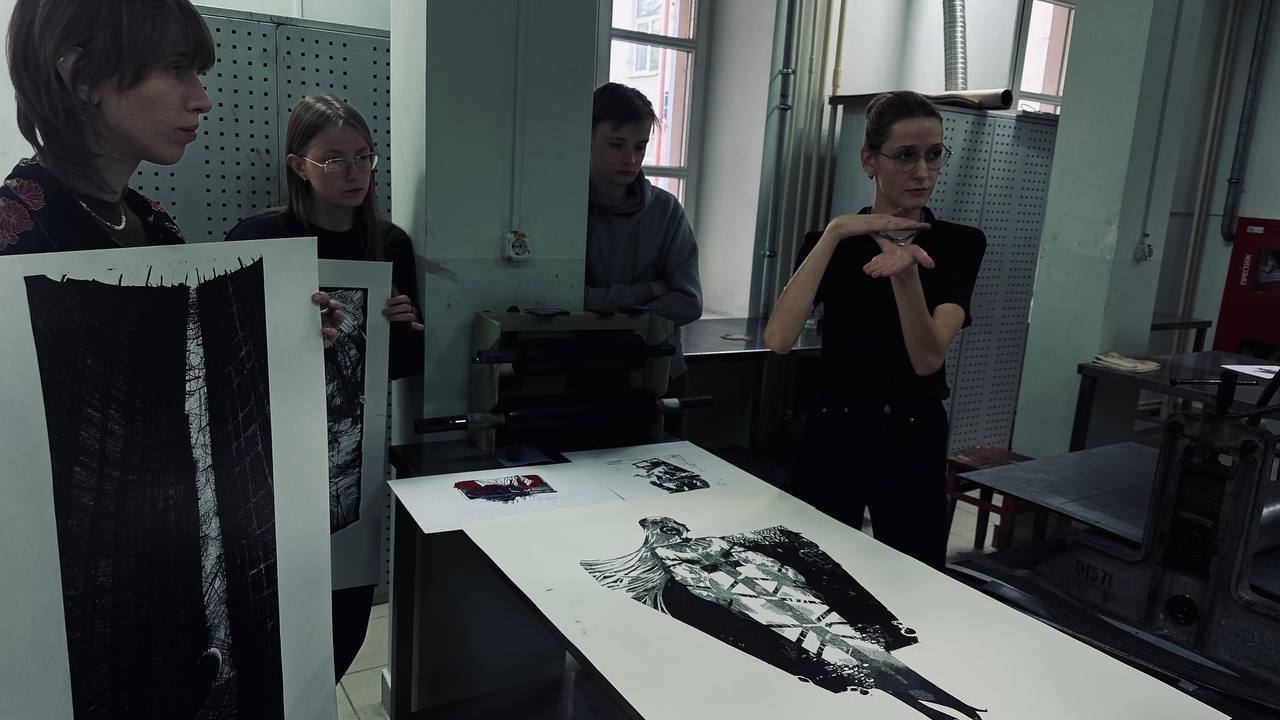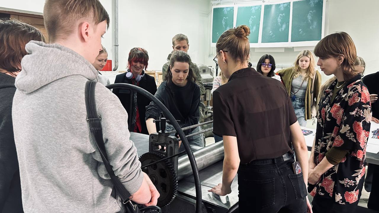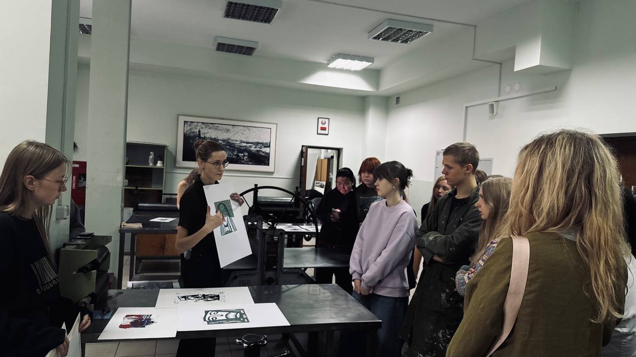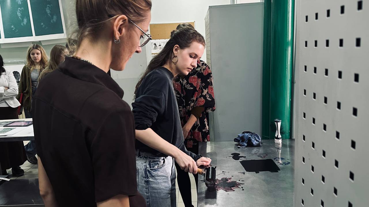Участники ознакомились с техникой создания печатного изображения на линолеуме и поучились делать оттиски, тем самым осваивая основы графики!