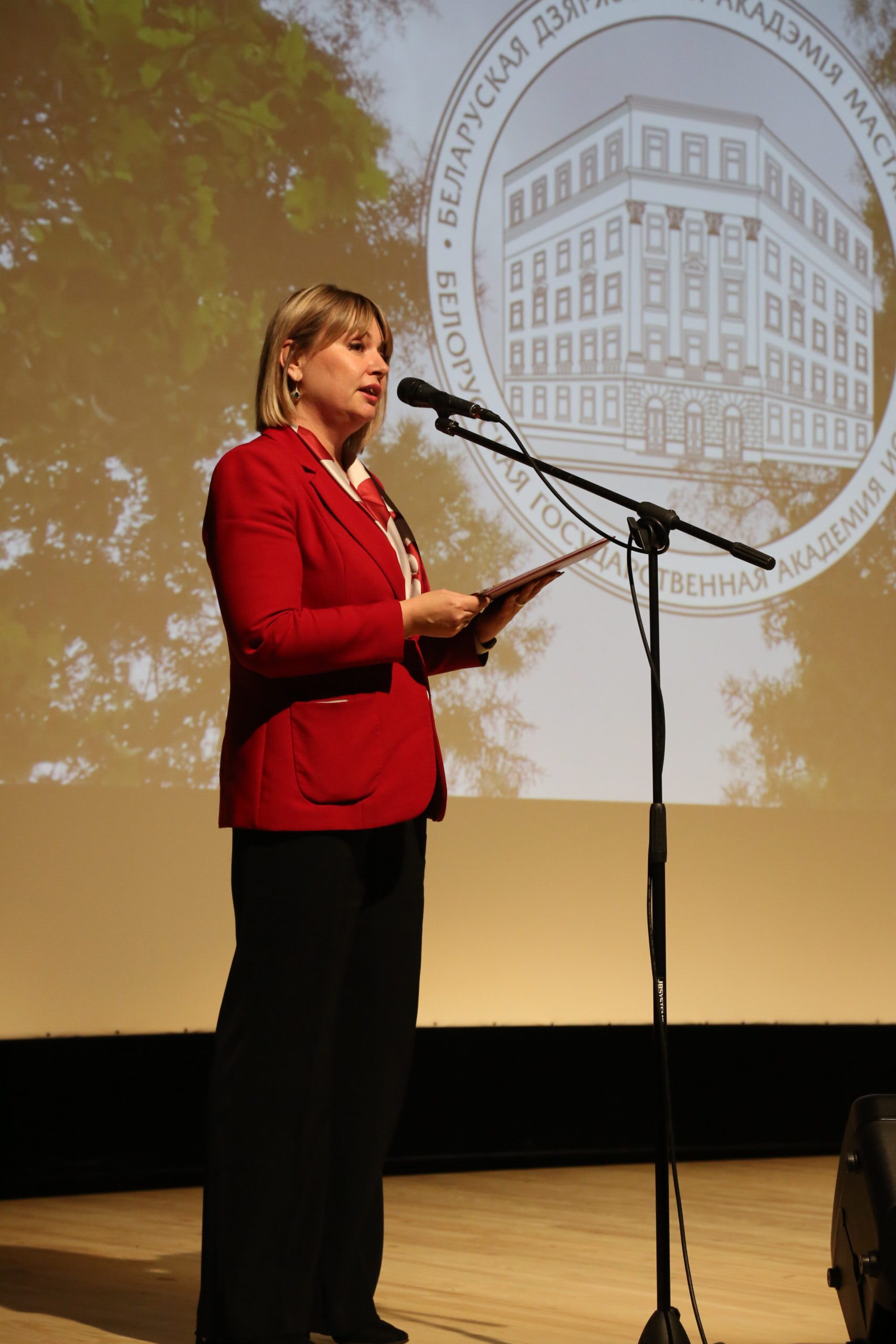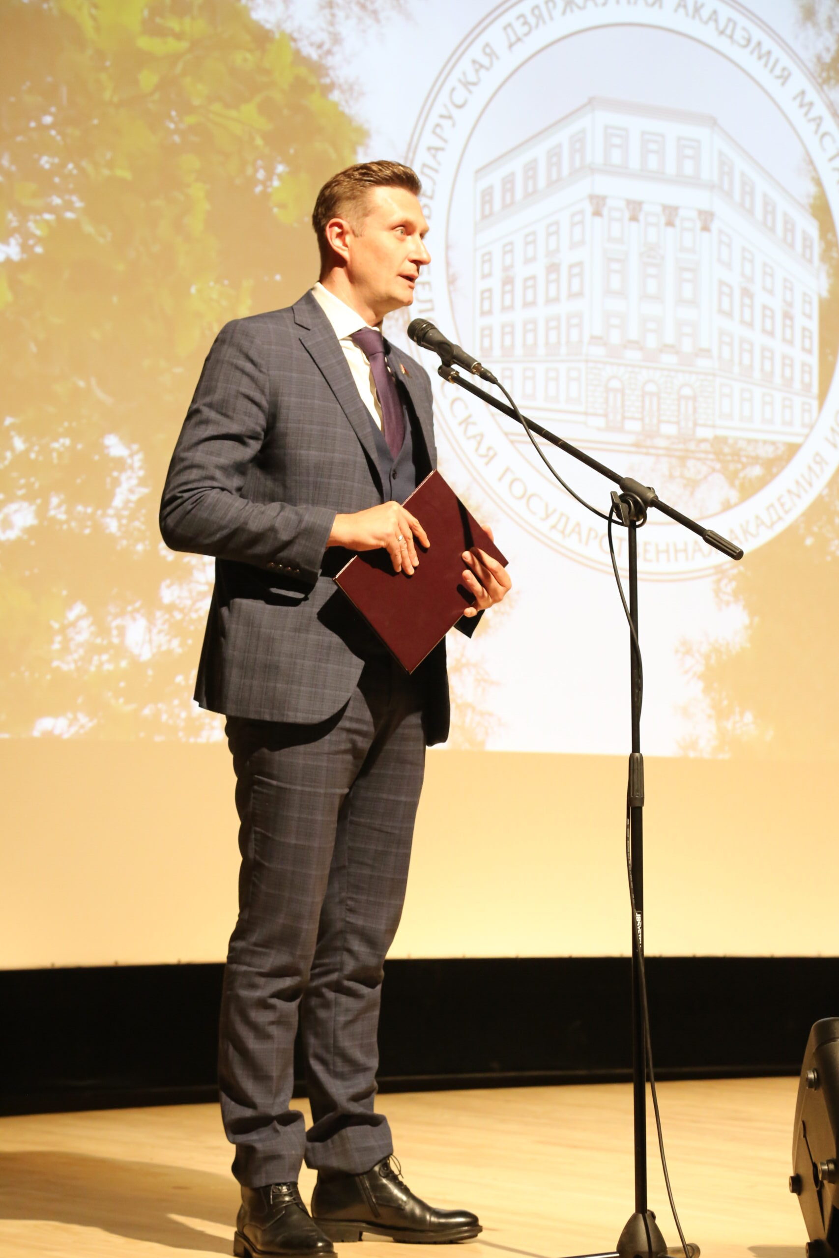 Церемонию награждения тех, кто много лет преданно трудился во благо развития академии и нашей Республики Беларусь, провели Министр Руслан Чернецкий, первый заместитель главы администрации Первомайского района г.Минска Ольга Федорова, заместитель Председателя Федерации профсоюзов Беларуси Татьяна Филимонова, председатель Белорусского профессионального союза работников культуры, информации, спорта и туризма Михаил Портной, первый проректор БГАИ Елена Ротмирова, начальник отдела учреждений образования Министерства культуры Марина Юркевич.Словаблагодарности родной академии за яркие моменты и бесценный опыт, за вдохновение, поддержку и атмосферу дружбы, за знания, рост и развитие высказали приглашенные гости, в том выпускники БГАИ.