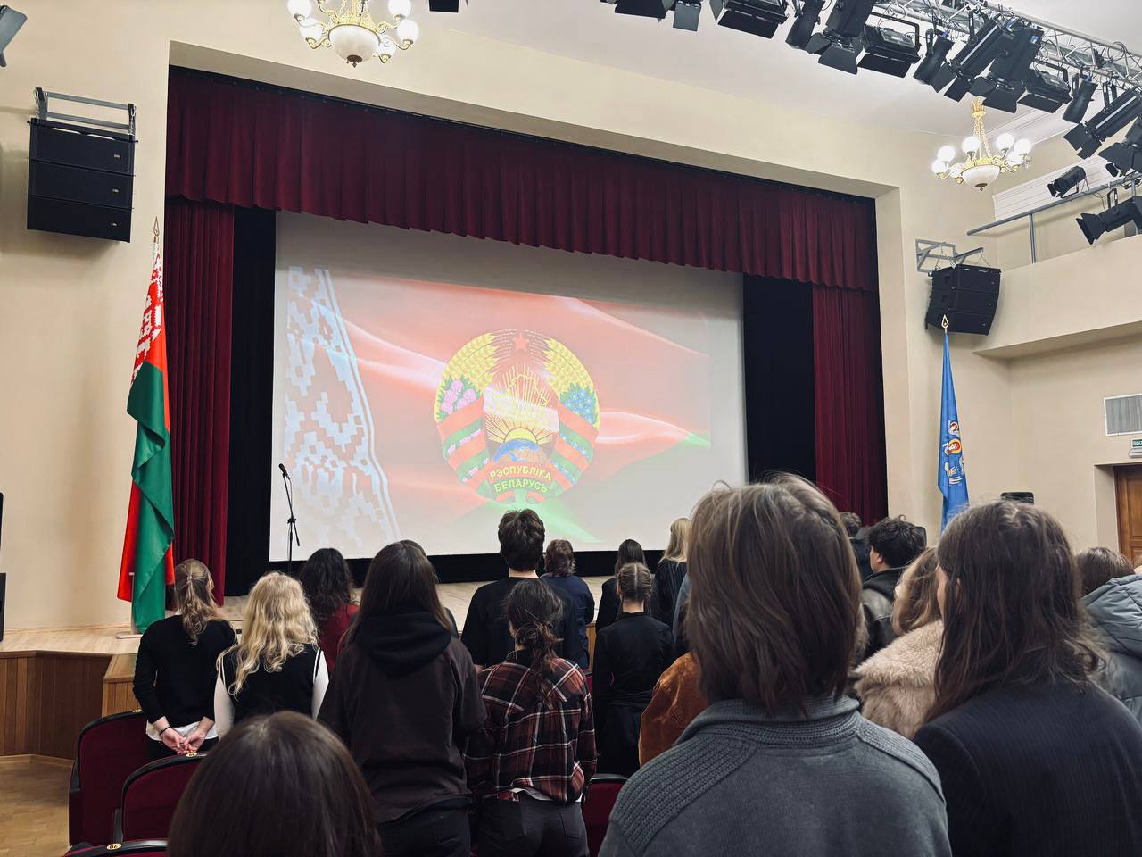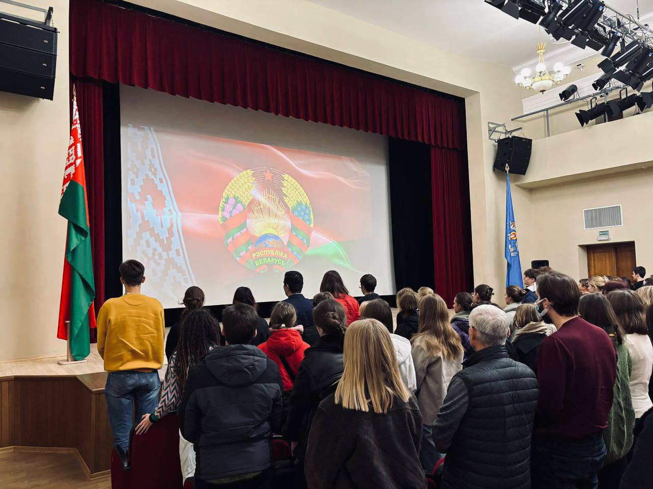 Начало таких мероприятий — традиционно патриотичное — совместное исполнение Государственого гимна Республики Беларусь!