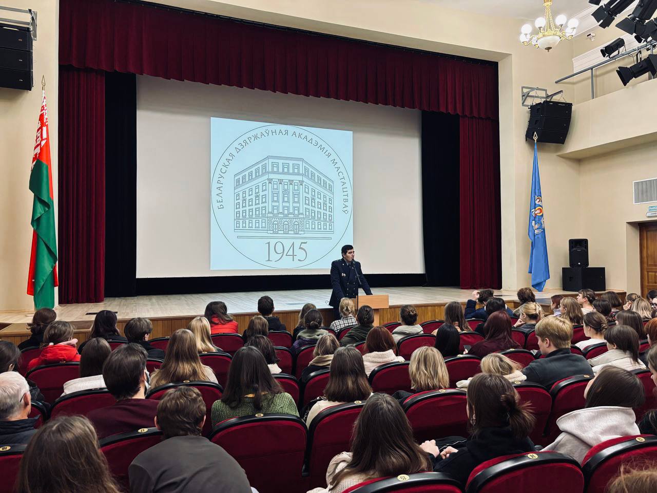 Для студентов ФДиДПИ и ХФ выступил заместитель прокурора Первомайского района г.Минска Евгений Палазник с освещением темы профилактики правонарушений, в том числе в молодежной среде.