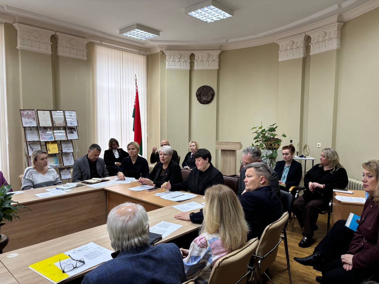 Среди участников — руководители организаций-заказчиков кадров — театрально-зрелищных организаций Беларуси и учреждений среднего специального образования, а также представитель Министерства культуры — начальник отдела учреждений образования Марина Юркевич, представители БГАИ — первый проректор Елена Ротмирова, проректор по учебной работе Анастасия Колосовская, начальник учебно-методического отдела Ирина Савостинкевич, руководство ФКТиТ.