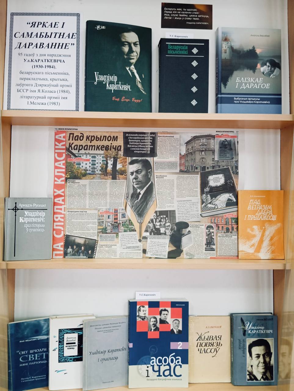 Бібліятэка сумесна з кафедрай агульнаадукацыйных дысцыплін Беларускай дзяржаўнай акадэміі мастацтваў арганізавала спецыяльнае мерапрыемства, прысвечанае 95-годдзю з Дня нараджэння беларускага пісьменніка, перакладчыка, крытыка, лаўрэата Дзяржаўнай прэміі БССР імя Я.Коласа, Літаратурнай прэміі імя І.Мележа Уладзіміра Караткевіча!